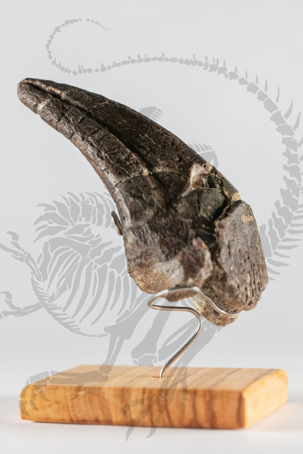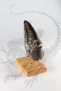 Allosaurus was an intimidating and iconic predatory dinosaur from the Jurassic. This authentic claw showcases the awesome power of this animal and makes for an incredible piece to add to any collection. Comes on a stunning custom hardwood stand. The base portion of the claw is the authentic fossil, with the tip end being restored using casts of a matching real claw. Allosaurus was a large predator from the North American Jurassic period, living about 145 million years ago. It’s been proposed it lived in groups, using numbers, massive claws, and blade like teeth to take down prey many times larger than itself. Allosaurus was by far the most successful theropod in its environment, several dozen specimens have been recovered by paleontologists, and is Utah’s own state fossil!