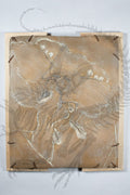 This incredible cast was molded directly off of the Berlin specimen of Archaeopteryx lithographica, and was hand-painted to match the original fossil. This allows the viewer to admire all the stunning details that make Archaeopteryx such an important scientific specimen- from the teeth in the animal's "beak", to the tiny clawed fingers, and even the individual fibers that make up the feathers on the specimen's wings. This all, alongside the included hardwood mount that allows the owner to easily hang the incredible piece on their wall makes this one of our finest casts to be added in any display or collection. Archaeopteryx was a small flying dinosaur from the Late Jurassic of Southern Germany, living about 150 million years ago. The largest specimens were raven-sized, at over a foot and a half long, ten inches tall, weighing about two lbs, and a wingspan of over two feet. An incredibly significant fossil, this animal was the first step in realizing the evolutionary link between dinosaurs and birds. Despite its bird-like body and feathers/wings, it had clawed hands and jaws lined with sharp teeth.
