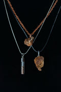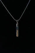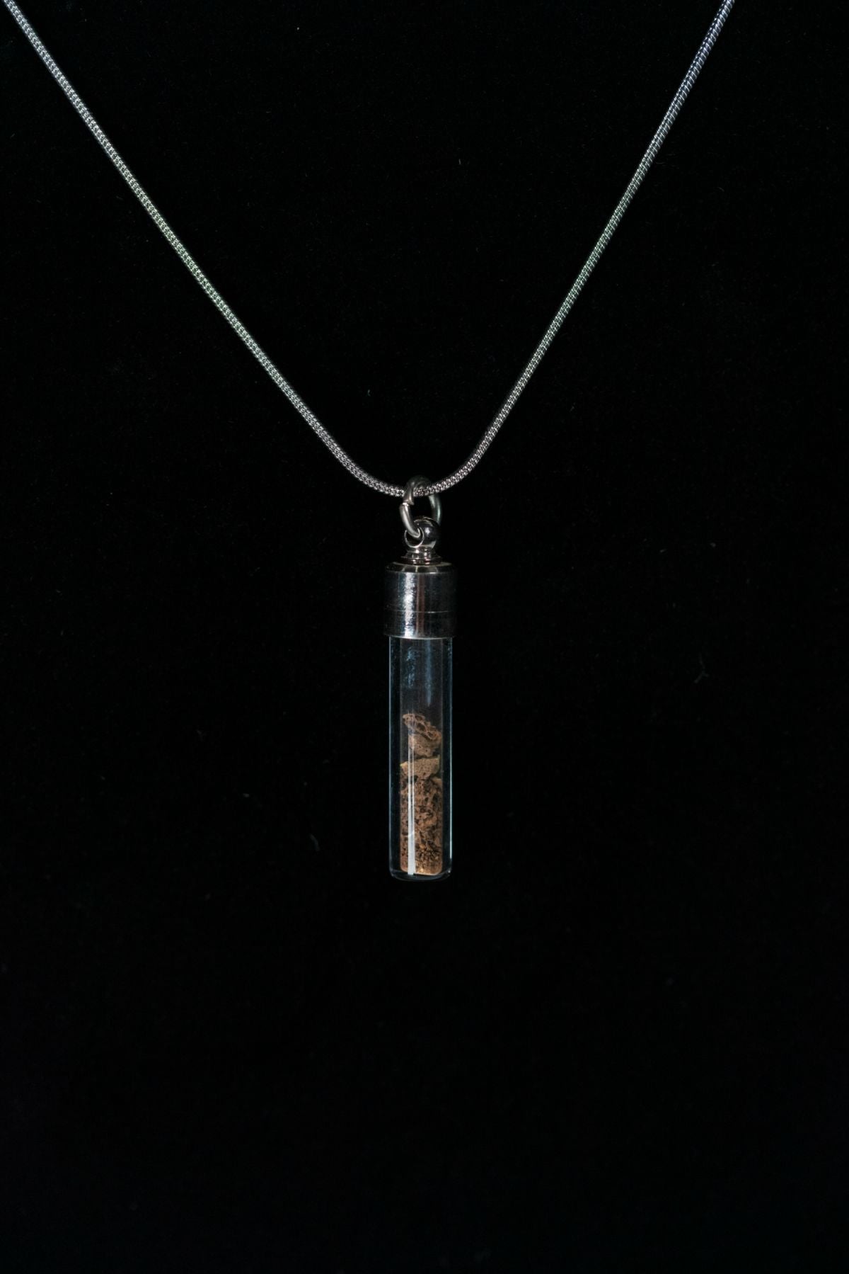 This incredible piece of jewelry is a capsule full of real dinosaur bone, belonging to Brachylophosaurus. This allows its owner to wear a real piece of a duck-billed dinosaur around their neck. Brachylophosaurus was a mid sized hadrosaur (duck-billed) dinosaur from the North American Late Cretaceous, about 75 million years ago. Brachylophosaurus could reach 35 feet long and weigh up to 7 tons. Several specimens of these animals have been discovered with ossified tendons (tendons that turn to bone to support the tail) and even soft tissue preservation! This means we know what the internal organs, muscles, and even skin looks like on these large herbivores!
