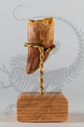 Tooth measures approx. 2.25" along curve, is about 3.25" high on stand, base is about 1.5"x1.5"