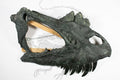 This cast was molded from the real skull material of the large horned carnivorous dinosaur, Ceratosaurus. It is the majority of the right side of the cranial material, with giant serrated teeth, gorgeous bone texture, and both the lacrimal and nasal horns on display. All this, plus the custom hardwood mount that allows you to easily hang the piece by a wire on your wall makes this an incredible display of one of the Jurassic's most distinctive carnivores. Ceratosaurus was a medium sized predatory dinosaur from the Jurassic period, living about 145 million years ago in North America. Not only is it incredibly rare for the time period compared to other theropods it lived with, such as Allosaurus, it was also very bizarre. This 25 foot predator had a large horn over its nose, two smaller ones in front of its eyes, spiky osteoderms along its spine, and very exaggerated teeth.