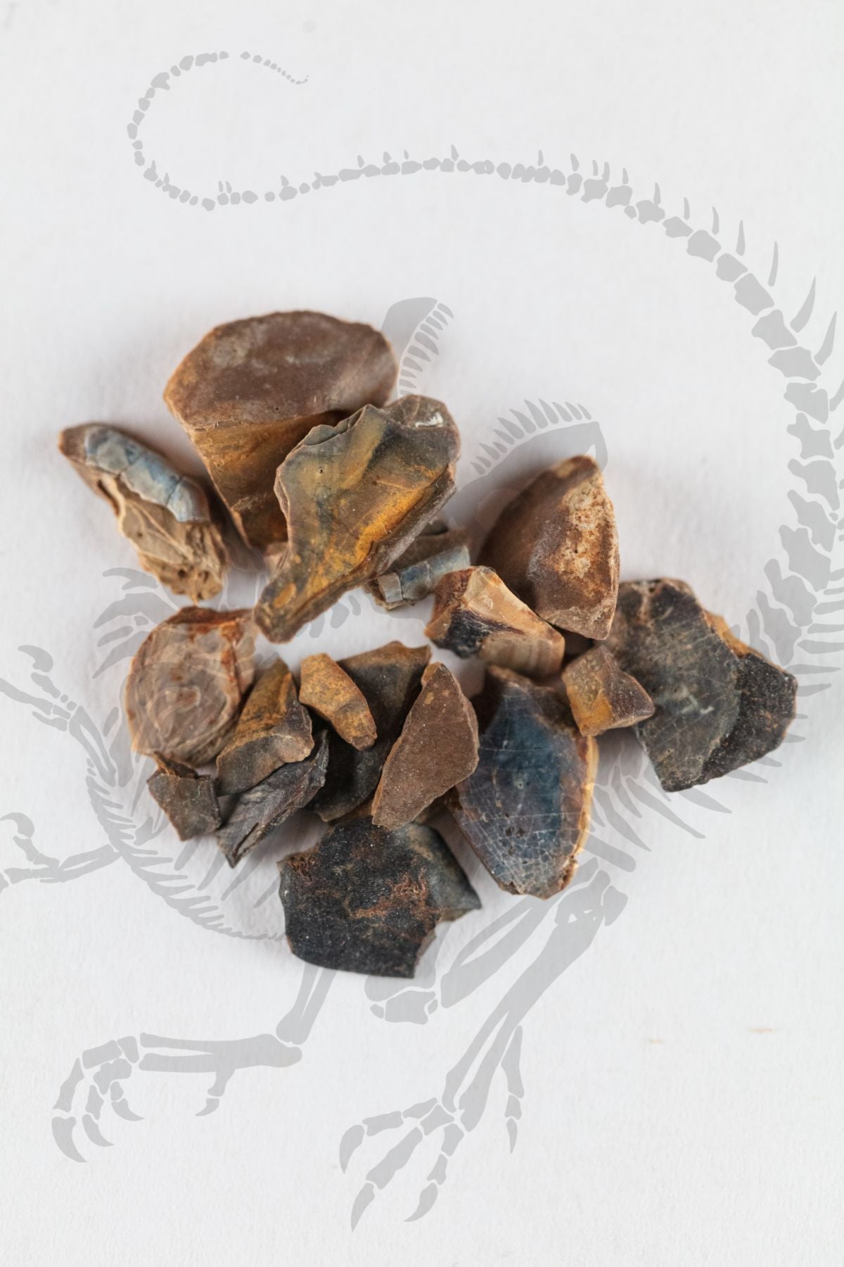 These are authentic gar fish scales dating to the Late Cretaceous period and were recovered in Wyoming, USA. In fact, these scales were discovered at the same site where a T. rex was being excavated! Gar fish scales are an assortment and will vary in size, color, and shape. Garfish are a type of needlefish that can be found in the brackish or marine waters today of the Atlantic Ocean, Mediterranean, Caribbean, Black, and Baltic seas. Despite this, they appeared in the Early Cretaceous, over 110 million years ago. They became especially populous around the arrival of the North American Hell Creek formation, about 66 million years ago. They are a predatory fish, with sharpened, needle-like teeth and thick, diamond-shaped scales.