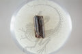 Fossil is approx. 0.5" long, approx. 3" high on stand, base dimensions are roughly 1.5"x1.5"