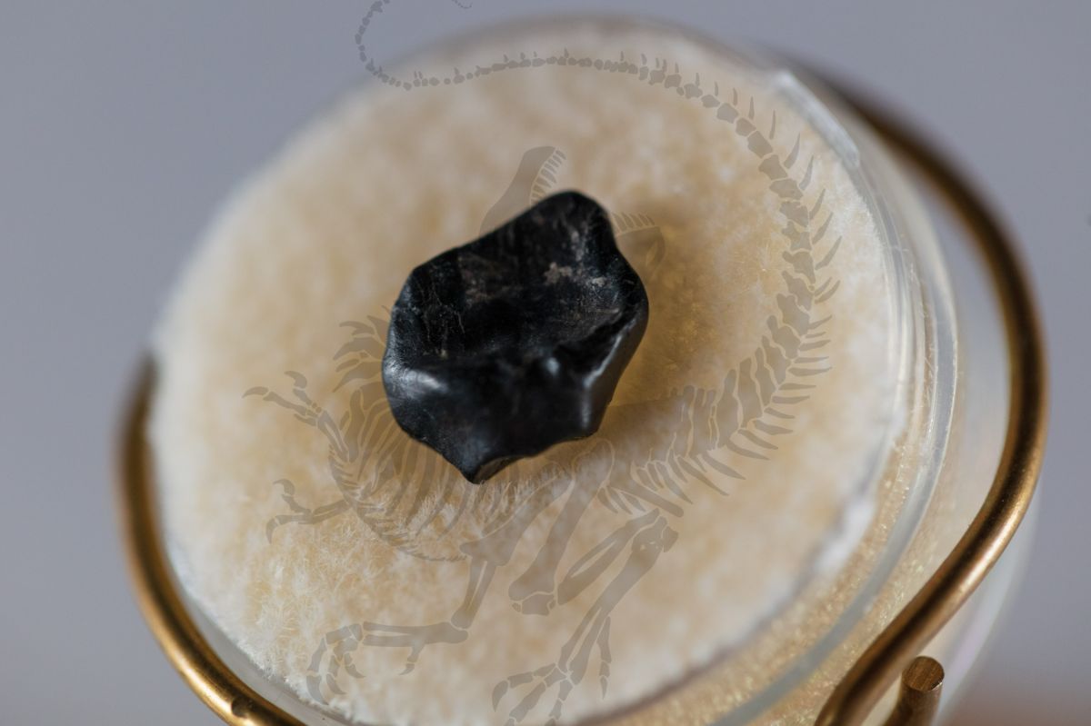 An authentic tooth belonging to the armored herbivorous dinosaur, Edmontonia. Spiky and literally armored to the eyelids, Edmontonia would've been an intimidating animal for any local predator to attempt to tackle. This real fossil is an beautiful piece of an astounding dinosaur from the Judith River Formation of Montana, USA. Comes on a gem-jar style custom hardwood mount. Edmontonia was a mid sized herbivorous ankylosaurid dinosaur from the Late Cretaceous period, about 76 million years ago. Reaching over 20 feet long, 6 feet tall and weighing over 3 tonnes, Edmontonia was an armored tank of an animal. Edmontonia was so heavily covered in spiky protective scutes that bone cores can even be found in its eyelids. It may have not only used the largest spikes on its shoulders as protection from predators, but also in rutting competitions against each other.