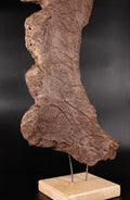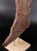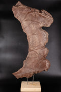 This incredible cast was molded directly off of the real fossil frill to Lokiceratops, the newest species of horned dinosaur, and is a truly show-stopping centerpiece to any collection, exhibition, or display. This cast frill shows the impressive headgear that gave Lokiceratops its name. Comes on a custom hardwood stand. Lokiceratops was a large horned dinosaur (or ceratopsian) from the Late Cretaceous of Montana, about 78 million years ago. Named for its distinctive frill horns, which bear a resemblance to the horned helmet of the Norse god Loki, Lokiceratops achieved sizes of over 22 feet long and over 5 tons. Perhaps the most unique and rarest trait this strange herbivore possessed was asymmetry, with the frill horns on one side not matching those on the other.