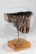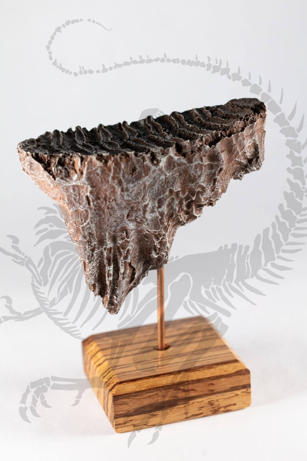 These giant molars were cast off real ones belonging to the most iconic Ice Age animal of all time, the Wooly Mammoth. A must-have for any paleo fan, fossil collection, or scientific display. Comes on a custom hardwood stand. Wood type and color will vary. Mammoths were large pachyderms that dominated the Pleistocene landscape until about 10,000 years ago. Closely related to today’s Indian Elephant, they looked very similar- but were often larger and covered in shaggy fur. There were several species of Mammoth, but the most famous is the Wooly Mammoth. These large herbivores were so big that only large packs of predators like Smilodon or Dire wolves could take them down.