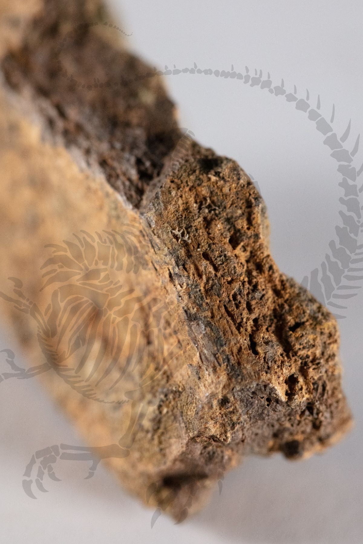 Authentic fossil bone piece from the frill of the giant horned dinosaur, Triceratops. Found in the Lance Creek Formation of Wyoming, USA, this is a beautiful piece of one of the most imposing and iconic of dinosaurs. Triceratops was a large herbivorous dinosaur that lived in North America in the Late Cretaceous period, about 67 million years ago. Famous for its horned face, the two horns above the eyes could get over 4 feet long, and the horn over it’s nose over a foot long. Triceratops was extremely heavily built, weighing 9 tons. This put it at equal weight with its only predator, Tyrannosaurus, despite being half as tall. It used batteries of shearing teeth and a sharp beak to eat plants in it’s environment.