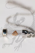 The pendant on this necklace is a real fragment of tooth belonging to the imposing iconic herbivore, Triceratops. This authentic tooth piece was recovered in Wyoming, USA, and dates to the Late Cretaceous period, about 66 million years ago. This necklace allows the owner to have a real piece of possibly the most iconic and well-defended herbivore of all time. Triceratops was a large herbivorous dinosaur that lived in North America in the Late Cretaceous period, about 67 million years ago. Famous for its horned face, the two horns above the eyes could get over 4 feet long, and the horn over it’s nose over a foot long. Triceratops was extremely heavily built, weighing 9 tons. This put it at equal weight with its only predator, Tyrannosaurus, despite being half as tall. It used batteries of shearing teeth and a sharp beak to eat plants in it’s environment.