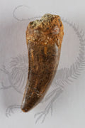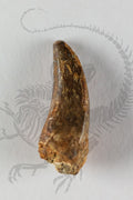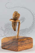 Tyrannosaurus rex is possibly the most iconic and impressive apex predator of all time, with its teeth being possibly the most iconic and impressive part of the animal respectively. This beautiful dark chocolate colored authentic T. rex tooth is the tip of what could've been a banana sized weapon. This incredible fossil from the Lance Formation of Wyoming, USA has perfectly preserved enamel and stunning serrations, a signature of the many dinosaurs that surely fell to this incredible carnivore. Comes on a custom hardwood mount. Tyrannosaurus rex was a giant predator that ruled the North American forests during the Late Cretaceous, about 65 mya. Arguably the largest land predator to have ever walked the earth, other meat eating dinosaurs were possibly longer than T. rex, but none as tall or heavy. T. rex was the apex predator in its environment, hunting prey like Triceratops, Ankylosaurus, Alamosaurus, & Edmontosaurus with possibly the most powerful bite force ever.